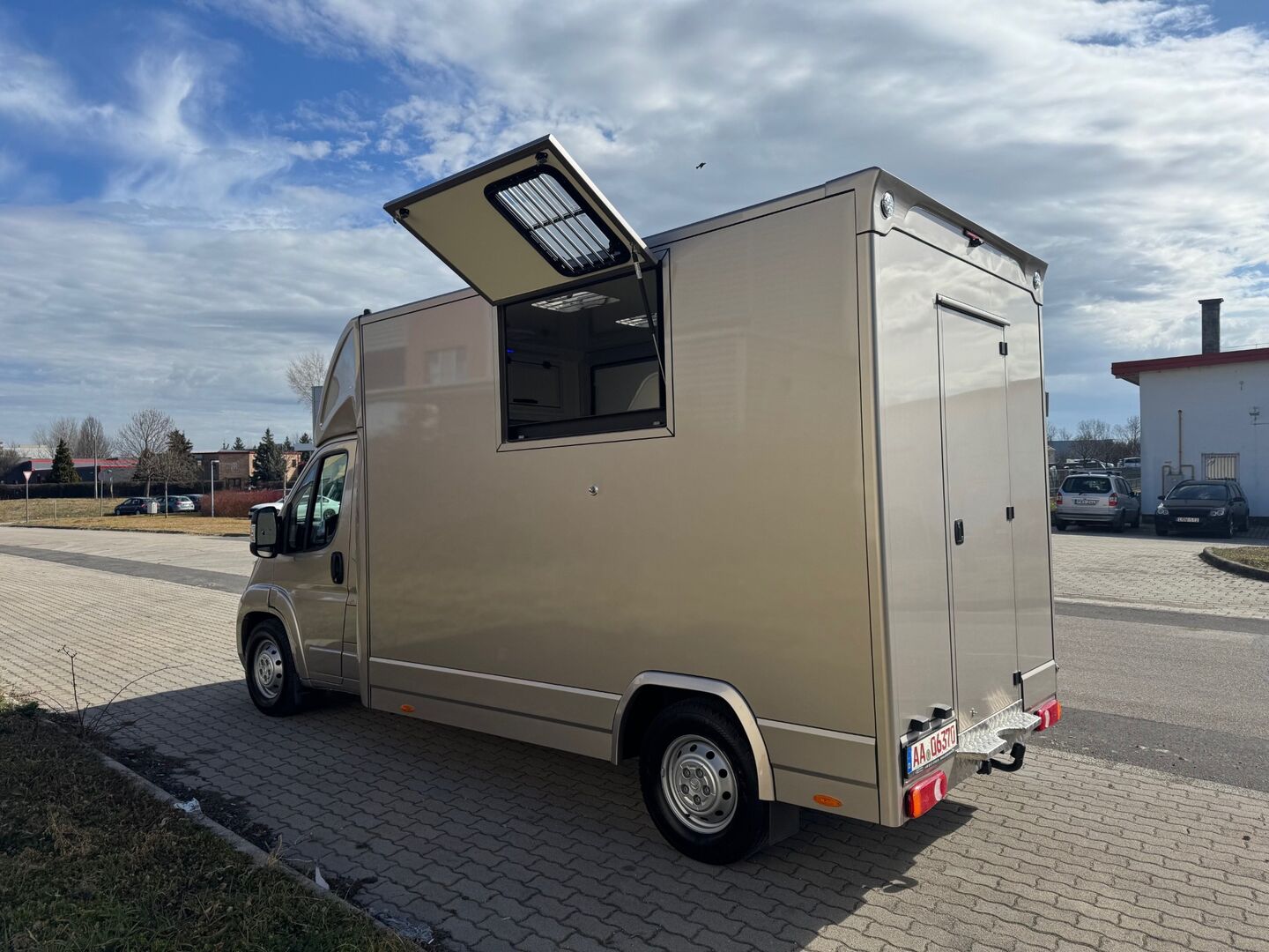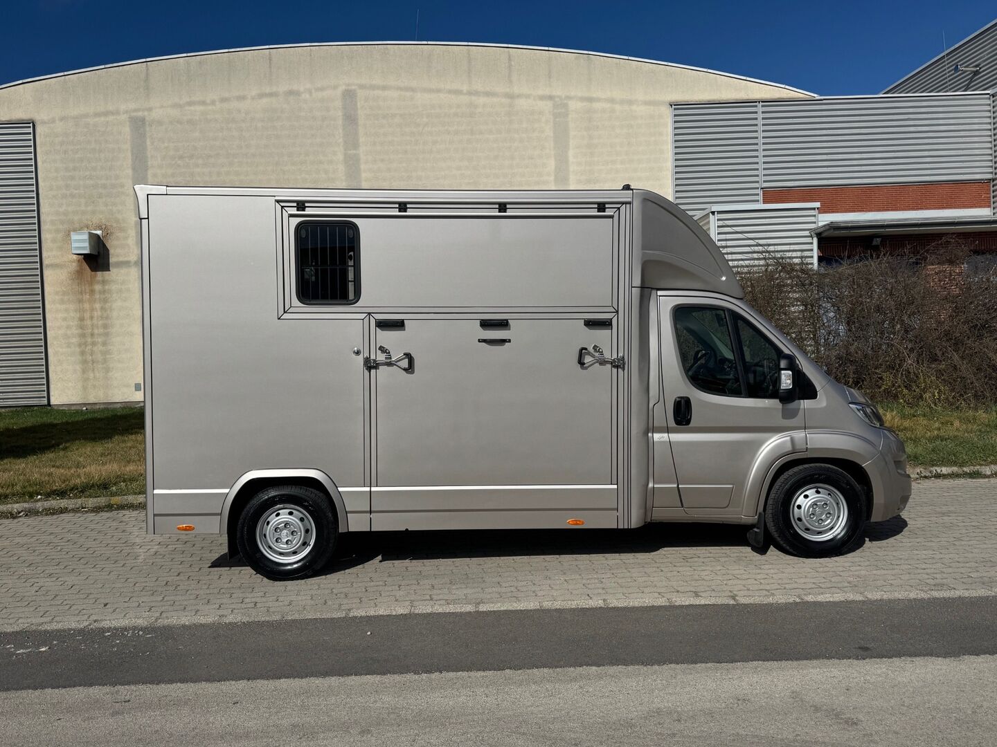 Sidoramp med stor öppningsbar lucka ovanför, stor ventilationslucka för de "heta tävlingsdagarna" som säkert kommer att komma igen denna säsong. Plank på rampen, skiljevägg med nackfäste, fällbart bettskydd, höhäckskrokar, elektrisk fläkt, 2 takluckor, förvaringsfack ovanför förarhytten, 2 svängdörrar till sadelkammaren.