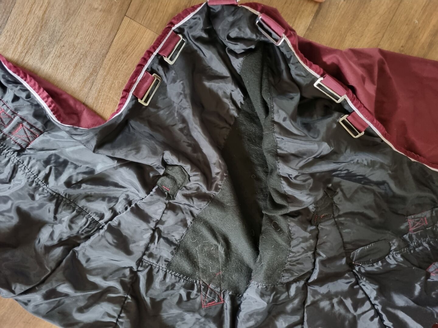 Hästvänner regnskydd - Jag säljer min regnfilt från hästvänner. Den är 145 cm lång och har fleece på insidan. Det finns spännen i nacken där du kan fästa 100 g, 200 g och fler underblanketter. Filten är i mycket gott skick. Den har inga hål. Det finns 2 magband och även bensnören som kan tas bort fritt efter användning.