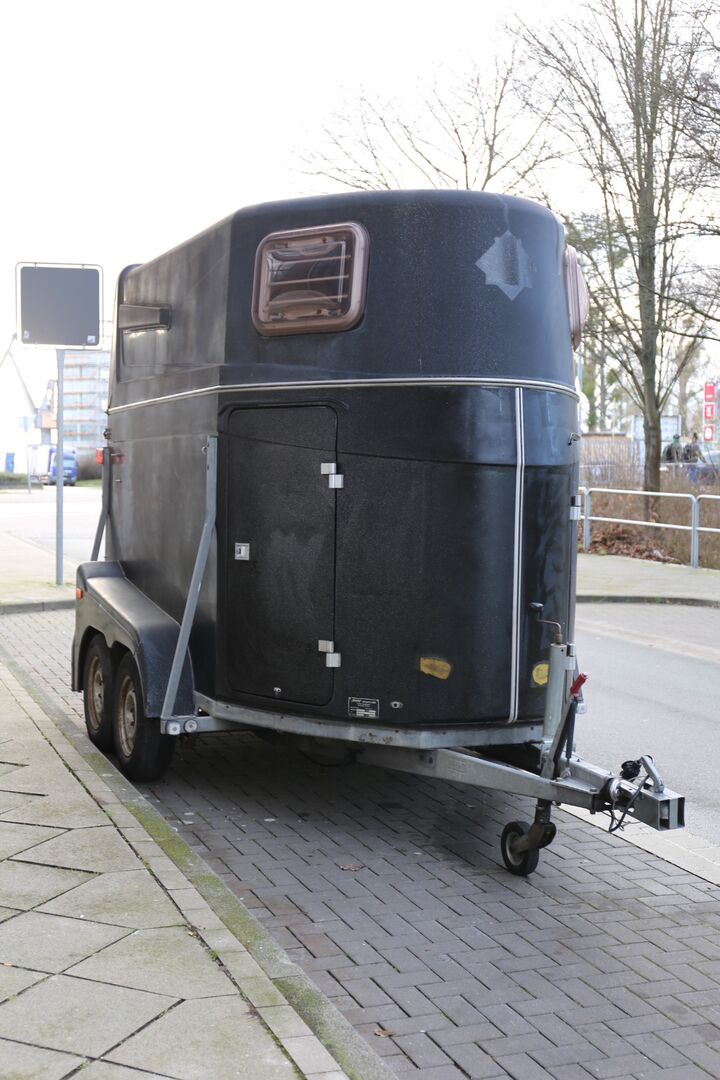 Jag säljer min fantastiska BIOS-vagn. Jag säljer släpvagnen eftersom jag har sålt min ponny och inte för att jag vill ha en nyare släpvagn eller behöver reparationer. Släpvagnen har alltid tjänat mig väl. Jag köpte släpvagnen för 6 år sedan. Vid den tidpunkten hade den en del brister. Takelementet på släpvagnen var sprucket på tre ställen och den tidigare ägaren hade gjort två hål i sadelkammaren med en gaffeltruck. Jag reparerade dessa skador med epoxiharts och matta. Detta har helt återställt stabiliteten, statiken och hållbarheten och är nu bara en fläck. Träkärnan i bakluckan förnyades 2016. Golvet är i mycket gott skick. Vid ett tillfälle har golvmattans tätningsmassa lossnat och gummimattan har böljat uppåt. Här har jag skurit in gummimattan så att eventuell fukt som kan ha trängt in alltid kan torka väl. Medan släpvagnen var i min ägo förnyades bromssystemet. Det finns två nya gasfjädrar, dessa är ännu inte monterade men kommer att levereras. Släpvagnen är redo att köras. Det finns ingen eftersläpning i fråga om reparationer. Hästarna står säkert och lugnt i den ljusa och stora interiören. Köparen kommer att få en faktura med moms.
