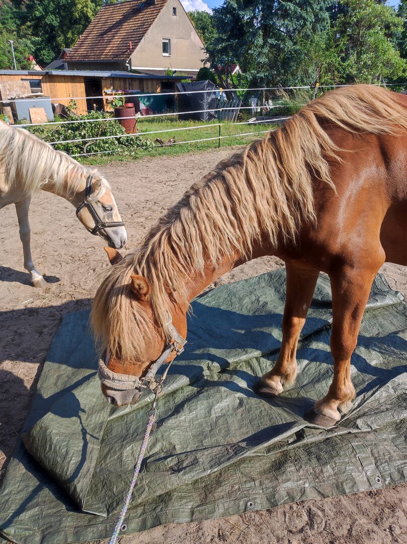 Haflinger Blandvallack - Med tungt hjärta måste vi skiljas från vår 4 år gamla Haflingerblandning. Han är 1,43 cm lång. Vi ger bort honom rå, eftersom vi bara har arbetat med honom på grunderna som hovarbete, markarbete för att bygga upp muskler och blyträning. Tyvärr är vi tvungna att skiljas från honom och kan inte träna honom ytterligare. Den tidigare ägaren måste ha ridit honom med ungdomar. Hans karaktär är helt underbar och med rätt träning kommer han att bli en fantastisk ponny för barn och familjer. Vid intresse kan även en nystoppad sadel köpas till.