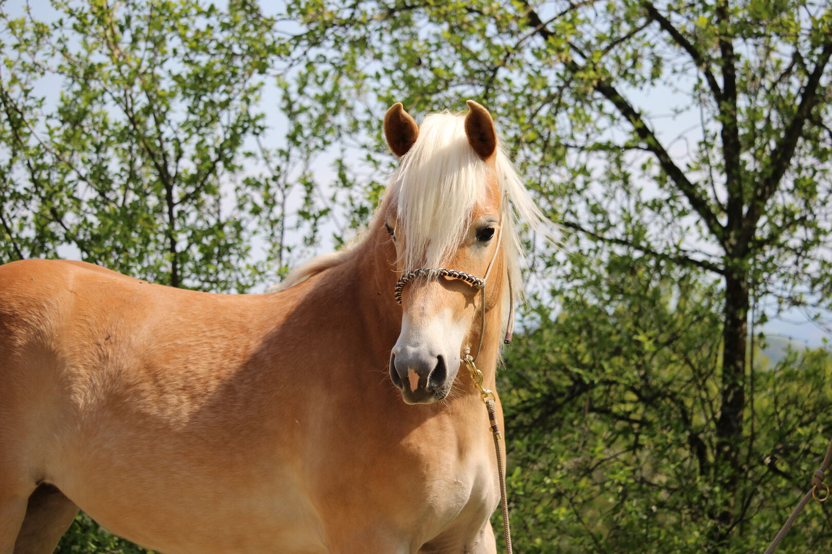 Haflinger ungt sto - Det tvååriga stoet Talina (bilden till höger) är mycket livlig men nyfiken. Hon är definitivt svårare att hantera än Enna. Hon är dock mycket människoorienterad, men kan snabbt bli respektlös. Talina kan också några grunder i markarbete enligt Parelli. På fältet är hon fortfarande mycket nervös och behöver tid innan hon litar på en person och känner igen den som "chef". Talina går också bra på egen hand. Hon nådde en tredje plats i fölchampionatet. Just nu är hon 1,40 meter, men enligt gipsy-mätningar borde hon fortfarande växa upp till 7 cm. Far: Novill M: Tiara (entusiastisk och talangfull hoppare) n. Underbart