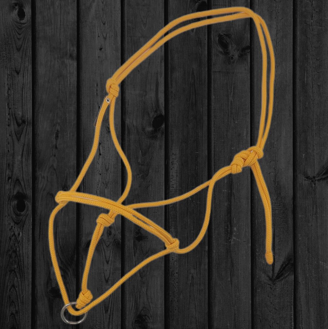 Halster med luggknut och ring COB i ockra - Lunging knot halter, knot halter med ring, vrider sig inte, sitter på plats även vid rörelse, glider inte över nosen. Idealisk för markarbete, cirkuslektioner, promenader, horsemanship, longering. Knuten grimma 6 mm tjock