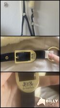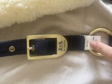 Halter B//Vertigo - Hej, Jag erbjuder min lammskinnsgrimskaft från märket B//Vertigo. Grimman har varit på min häst två gånger. Den är i färgen mörkblå med gyllene beslag.