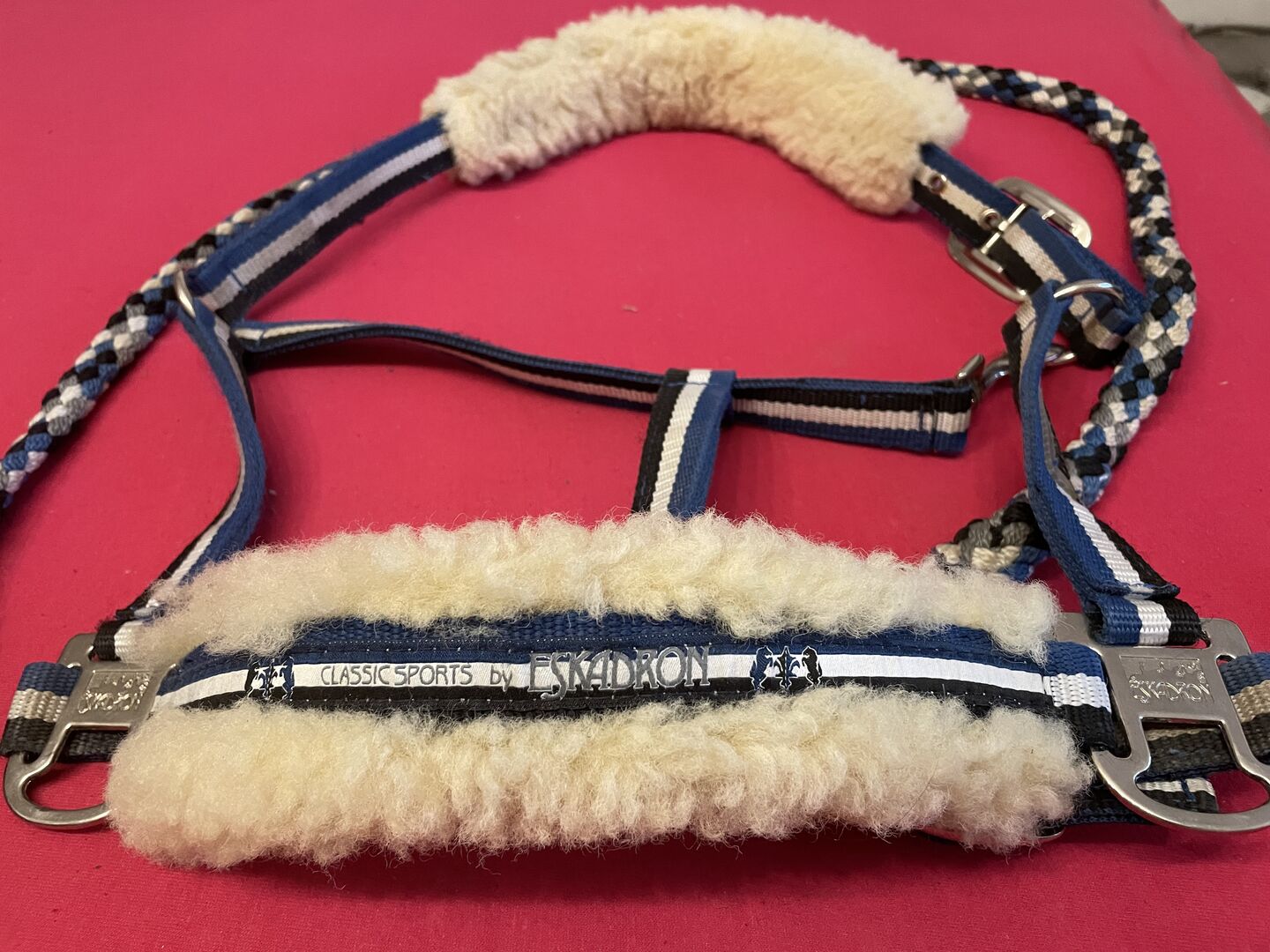 Halter Eskadron storlek WB - Säljer min Eskadron-halsband med lammskinn inklusive matchande rep från Classic Sports-kollektionen, användes endast som ett show-halsband och är därför i mycket gott skick, storlek WB. Frakt är möjlig mot betalning.