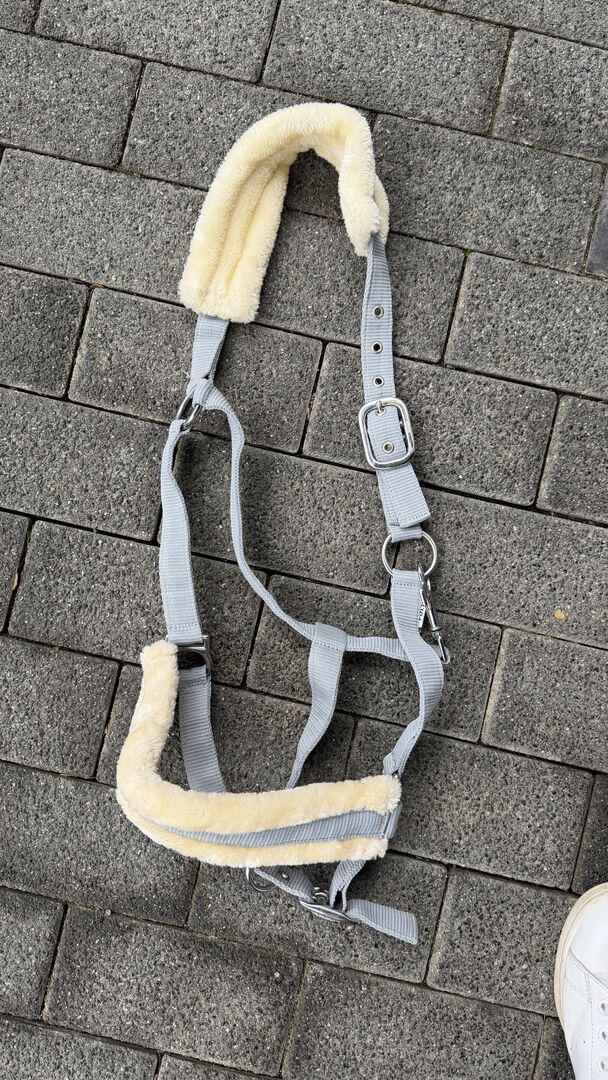 Halter grå WB - Jag säljer en halter i grått med "lammskinn" den har aldrig använts. Den är i storlek WB.