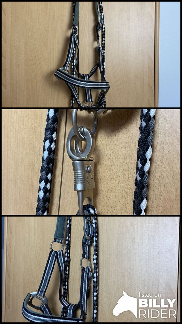 Halter storlek ponny - Säljer halster och rep i färgerna svart/vit/grå i mycket gott skick.