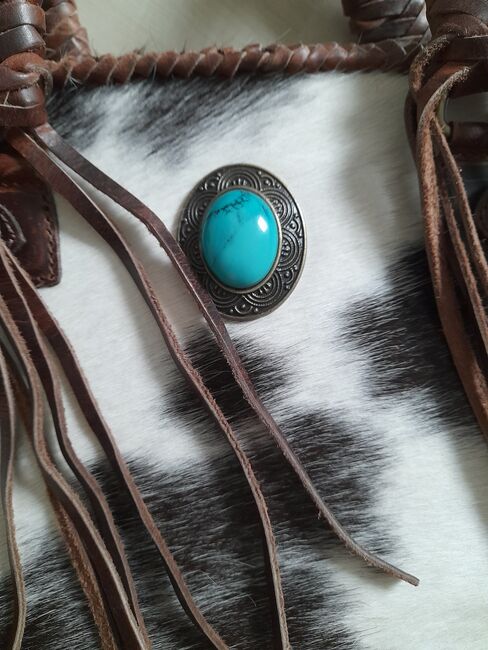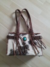 Handväska i westernstil, äkta läder och kohud - Ny, oanvänd handväska från USA. Äkta läder och kohud. Köptes förra året på en rodeo i USA för 150 dollar.