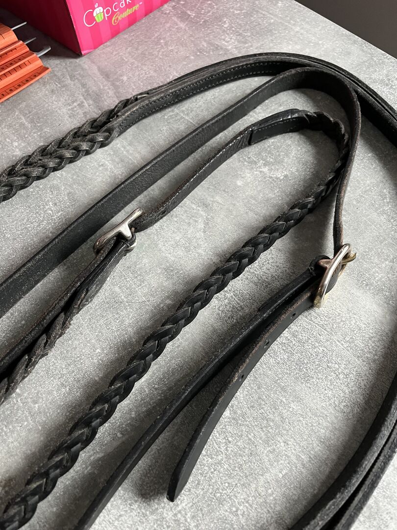 Tyglarna har ett grepp på insidan för ett bättre grepp, nosgrimman och huvudstycket är flätade.