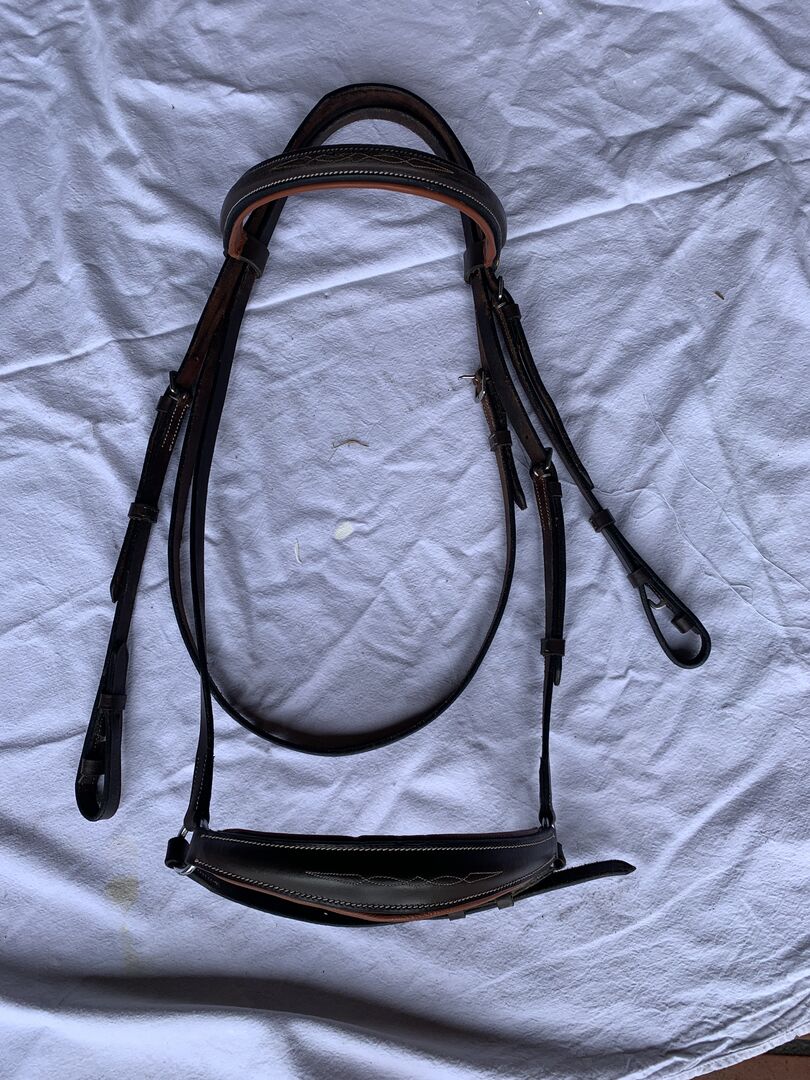 Hanoverian Snaffle Brown/Beige i WB - Till salu en lite begagnad Hanoverian Snaffle Brown/Beige i WB. Sömmen är lite använd och visar inga tecken på slitage. Tyglarna fästs med tryckknappar. Paypal är tillgängligt