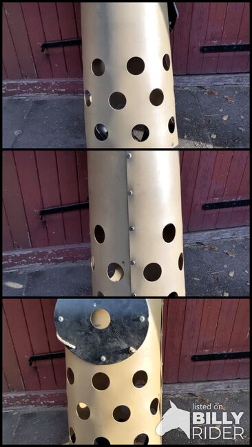 Hay Toy Används - HeuToy är fullt funktionsduglig och har tecken på användning. Materialet: bettfast, motståndskraftig, splitterfri och livsmedelsgodkänd plast. Enligt tillverkaren: fyllnadskapacitet ca 5 - 7 kg (120 l), höjd 86 cm, diameter ca 44 cm, vikt 3,4 kg, håldiameter 7 cm. Jag stoppar högst 4 kg så att min häst kan plocka höet bra och så att höet inte är för komprimerat. Du får gärna skriva till mig om du har några frågor.