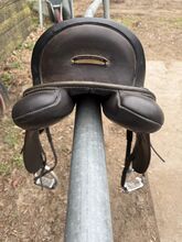 Säljer min Hennig mono flap dressyrsadel - i bra skick I gott skick - anpassningsbar Utan stigbyglar