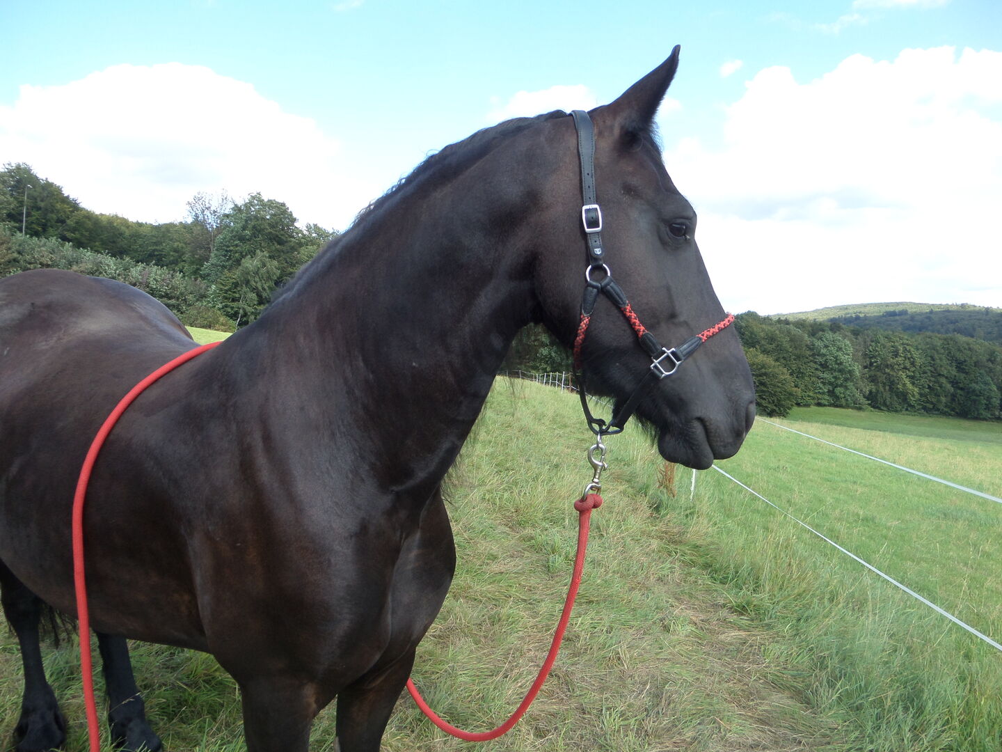 Hermine - en dröm i svart - Barockfrisiskt sto - Ungt friesersto - Baroque - mycket människointresserad- 5 år gammal Hermione van Gryffindor är mitt namn och precis som Hermione i Harry Potter - har jag fått kämpa mig igenom mitt unga liv. Det är tur att min människomamma reagerade omedelbart och gav mig utmärkt behandling. Efter mina två operationer fick jag vila i över ett år, men nu är jag redo att ge mig ut i den stora vida världen. Min läkare kan bekräfta detta. Min ägare ger dig gärna mer information. Jag är haltfri och njuter av mitt liv just nu på kullens betesmarker, tillsammans med mina hästkompisar gillar jag att galoppera längs ängarna. Jag är verkligen en bra fritidspartner, min hästmamma, med vilken jag fortfarande är i min flock, är en absolut pålitlig häst och har en fantastisk karaktär - båda som hon har överfört till mig. På vissa bilder kan du också se mig med min mamma. Jag skulle älska att gå crosscountry med min nya ägare, så jag skulle vilja gå i händer som kommer att acceptera och uppmuntra mig som deras rent fritidspartner eller bara ha kul med mig. Jag ska inte springa tävlingar eller snäva svängar. Jag är född den 12/4/2018 och har byggt upp mig bra - så är mer i barocktypen, min mamma är 1.66m så jag kommer nog vara det snart om inte några centimeter till. Jag sägs vara mycket lärbar, vaken och uppmärksam. Jag lär mig lektioner snabbt och är alltid angelägen om att behaga. Jag går i en flock med 24 timmars bete under sommarmånaderna och öppet stall/box under vintern. Jag är därför mycket välbalanserad och utmärkt socialiserad. Naturligtvis är jag regelbundet presenterad för hovslagaren och regelbundet avmaskad och vaccinerad. Stamtavla i bilagan. Ytterligare egenskaper - bara standarden - men jag skulle vara glad om du skulle vilja lära känna mig personligen, nu när jag redan har berättat mycket om mig. ✓ Barhufvad ✓ inkl. hästpass tränad med grimma Fri från eksem ✓ Rå ✓ Smidda ✓ Allround ✓ Lastningsvänlig Videor kan skickas till dig.
