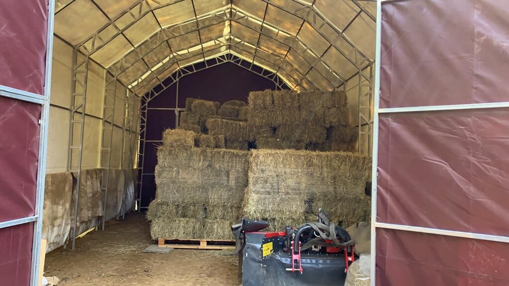 Jag säljer hö från föregående år eftersom vi har för mycket.