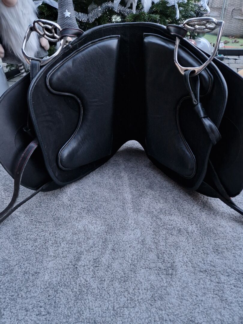 Hidalgo Leather Tree Saddle Cordoba Special - Jag säljer min spanska läderträdssadel från Hidalgo. Sadeln är 2 år gammal och har röda detaljer och en veloursits. Pommels ger ett bra stöd och sadelns breda kontaktyta ger en bra tryckfördelning. Sadeln har också en V-grimma och ett läderträd som växer med hästen. Kardborrepanelerna under sadeln är 45 cm långa och sadeln i allmänhet är cirka 53 cm lång. Sadeln satt på mitt Connemara-sto som har kort rygg. Dessutom är sadeln mycket bekväm.