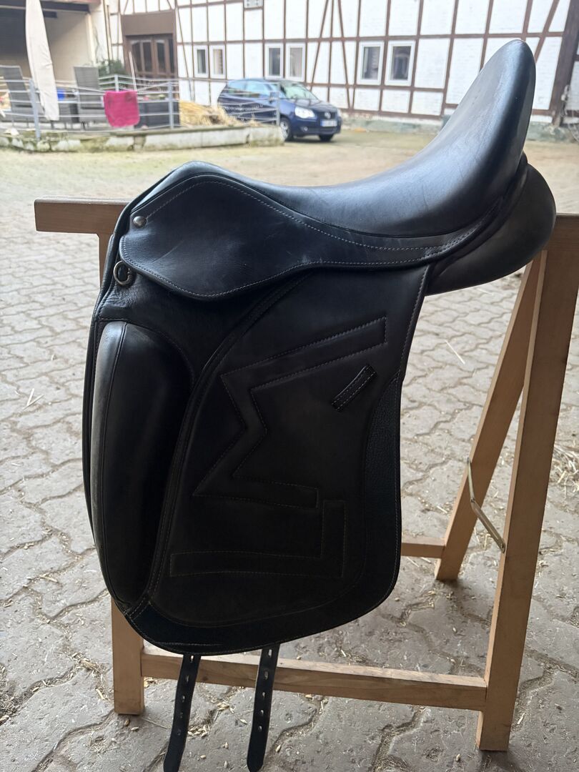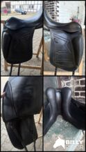 Hidalgo Pft sadel 17,5 tum - Sadeln är begagnad men i bra till mycket bra skick. Standard kotlettplatta monterad. Kan bytas ut av sadelmakaren. Sadeln anpassar sig mycket bra på grund av pft-sadeln. Hästen fick stå i 1 år efter köpet. Helt omstoppad förra året. Används dock bara någonsin som en 2-sadel. Vi kan inte klara det. Därför till salu Om du har några frågor är det bara att fråga.