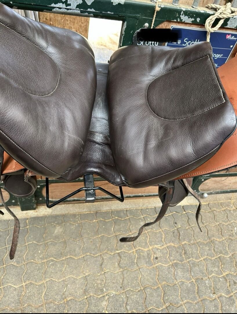 Jag säljer här min begagnade Hidalgo-sadel. Det är Santiago-modellen med en tredimensionellt rörlig PolyFlexTree-sadelbom.