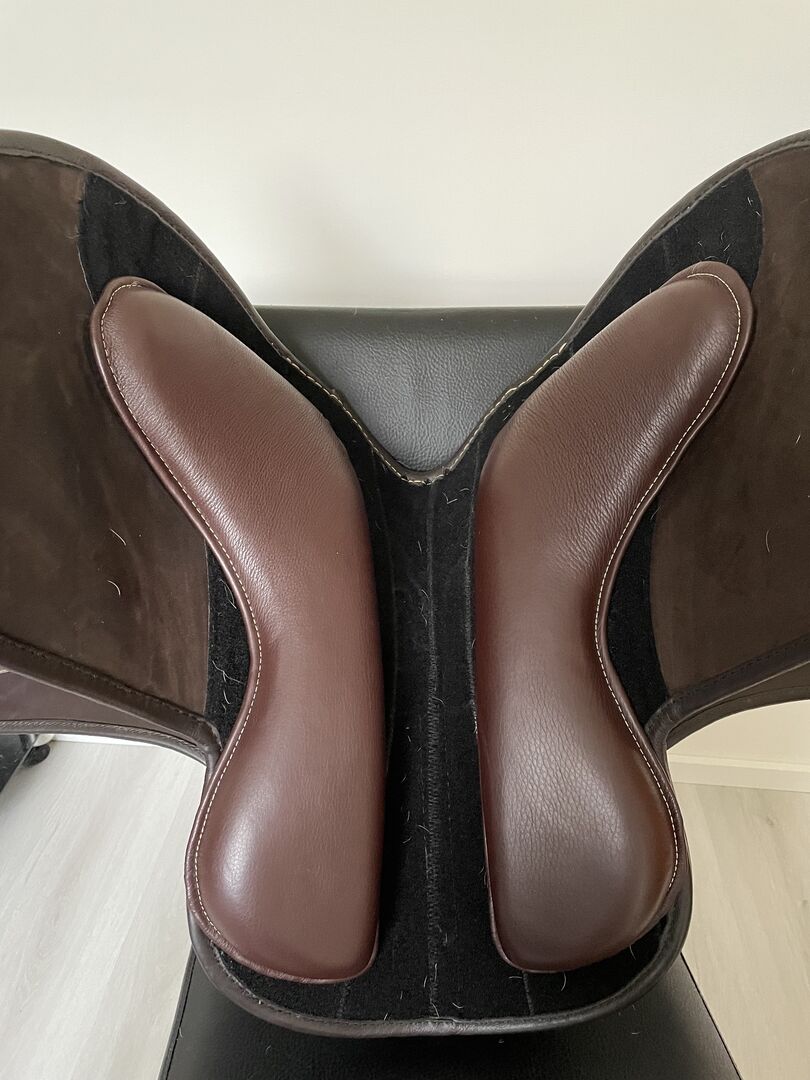 Hidalgo VS-sadel "Tokio Special", läderstam, brun, 18" - Jag säljer VS-sadeln "Tokio Spezial" från Hidalgo. Den har en supermjuk sits i 18 tum och är för närvarande utrustad med korta 39 cm kardborrepaneler. Sadeln köptes ny i november 2022 och är mörkbrun. Upphämtning föredras, men frakt är också möjligt om du tar leverans. Sadeln har alltid behandlats med stor omsorg. Den kommer att fortsätta att förvaras torr och varm tills den säljs. Sadeln har ridits väldigt lite. Den användes på ett kort Tinker-sto. Tillverkarens beskrivning följer: