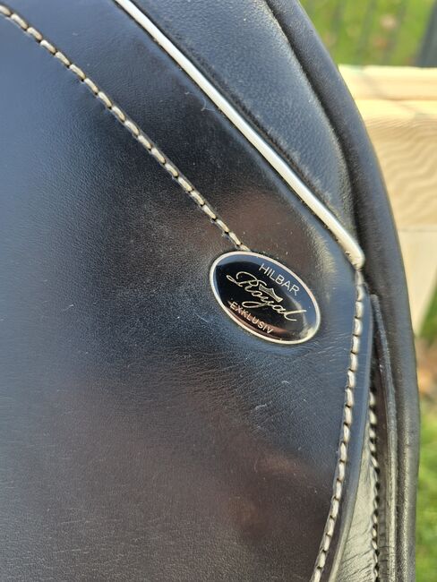 Hilbar Royal Exclusive sadel, 17,5", KW34 - Jag säljer en Hilbar Royal Exclusive sadel i nästan nyskick. Sadeln har en sittyta på 17,5" och en kammarbredd på 34. Kammaren kan kalljusteras av sadelmakaren upp till 4 kammarbredder. Sadeln har de beprövade Anatomic-panelerna för optimal tryckfördelning på hästens rygg. Sadeln är också extremt bekväm för ryttaren. Det finns också två alternativ för att fästa gördelremmarna.