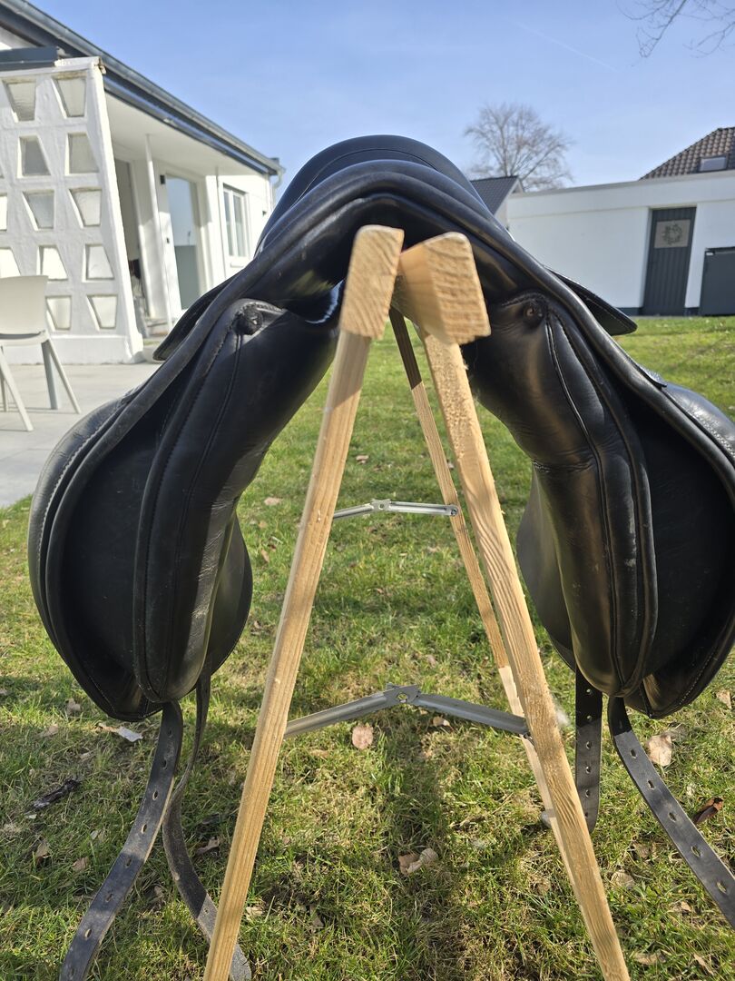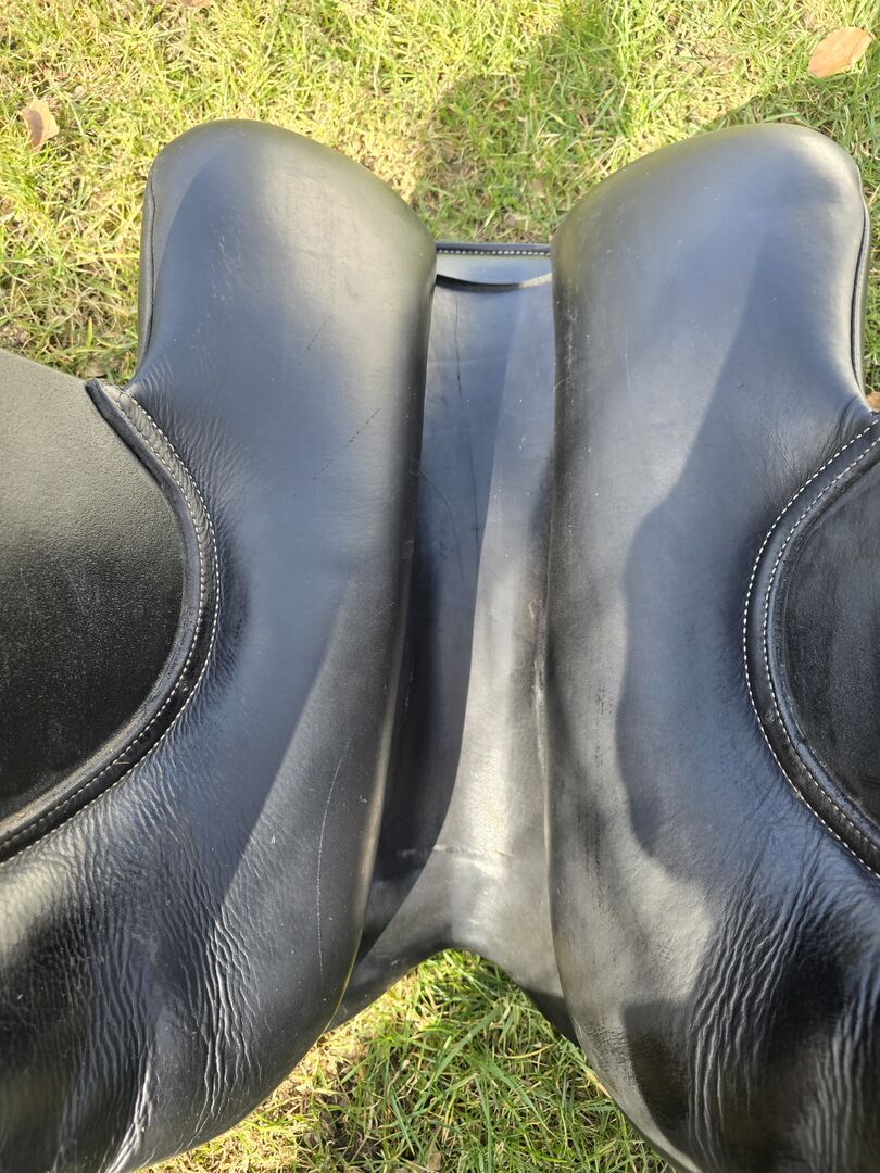 Jag köpte ursprungligen sadeln till min unghäst när han var långt ifrån att bli en ridhäst. Tyvärr passar inte sadeln nu. Sadeln har knappt använts och uppvisar därför knappt några tecken på slitage. Enligt sadelmakaren har stoppningen ännu inte "satt sig".