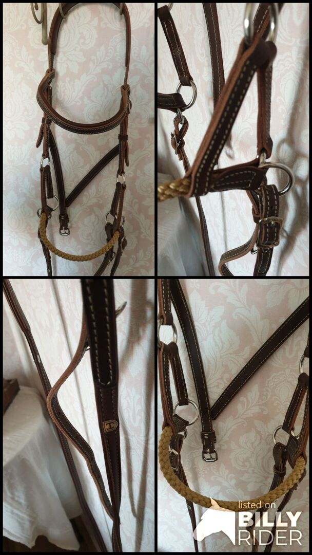Säljer en ny sidepull från Hillbury, tillverkad av äkta älgläder inklusive tyglar av älgläder.