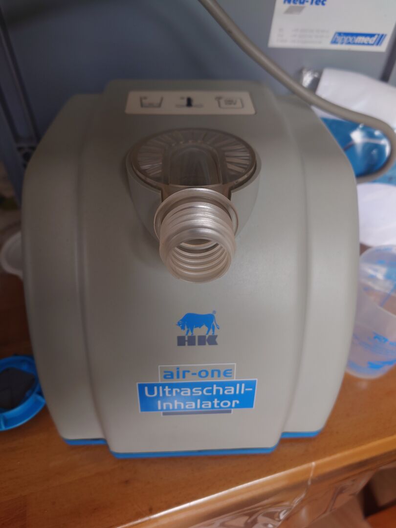 HIPPOMED ultraljudsrengörare AIR -ONE, version med strömkabel - Absolut så gott som ny och väl underhållen! Air One Flex nebulisator inkl. lock till nebulisatorkammare och snäppring, andningsmask storlek WB med inandnings- och utandningsventiler, gummitätning, huvudrem och fästband, nätaggregat, lång originalandningsslang, mätkopp, väggfäste (oanvänd, i originalförpackning) och transportlåda. Medicinkopp och kontaktvätska måste/kan köpas från tillverkaren. Som privat försäljning, ingen garanti och retur
