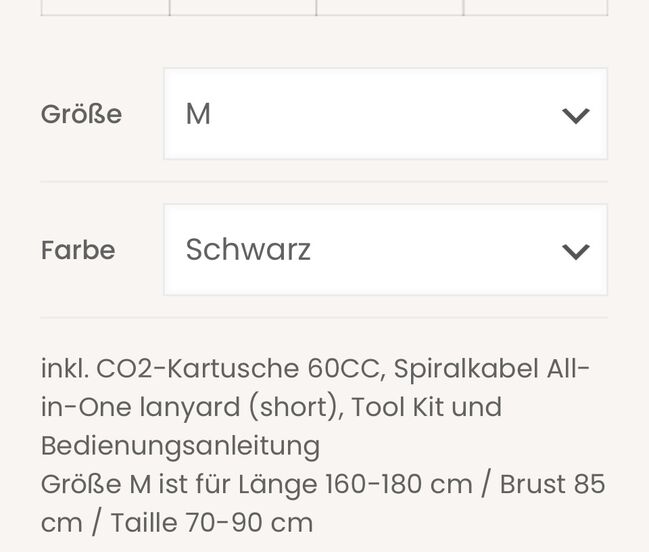 Jag köpte den här västen ny i maj 2025 för 530 euro, den tillverkades i april 2024, den är flexibel i storlek från S till XL. Västen användes bara ibland för hoppträning, den är fallfri och airbagen utlöstes bara en gång för att ta bilder och för att jag ville vara säker på att jag sålde en funktionell väst.