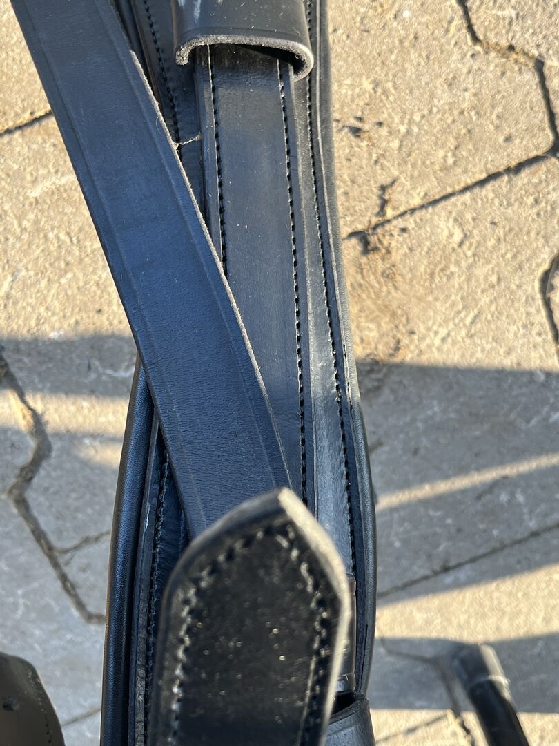 Högkvalitativ enkel sele Cob svart/brun - Säljer en super fin och högkvalitativ svart läder sele i storlek Cob. Selen är fodrad med ljusbrunt läder. Det är mjukt och flexibelt. Magremmen är helt ny. Lätt slitage på saxremmarnas kuddar. Sadel, bröstplatta, bakre sele, huvudstall. Frakt är möjlig för 12€.