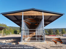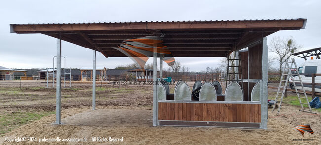 Höhäck för hästar & hästhäck - foderhäck och öppet stall med foderstaket | beteshäck - Höstallar för hästar | skydd med integrerad utfodringsyta | hästtråg