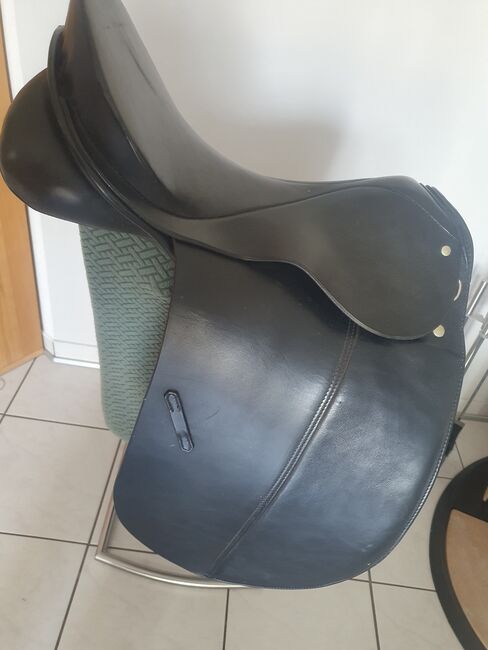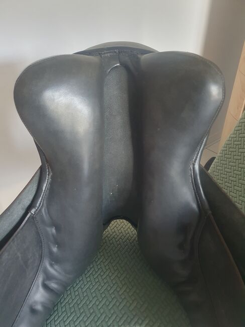 Höpfner dressyrsadel 17" svart - Jag erbjuder en dressyrsadel från Höpfner. Den har använts lite hittills. Jag köpte den själv begagnad i detta skick, men behöver en annan storlek. Den har nötningsskador på sadelklaffen, annars knappast några tecken på användning värt att nämna. Stoppningen är ganska fast.
