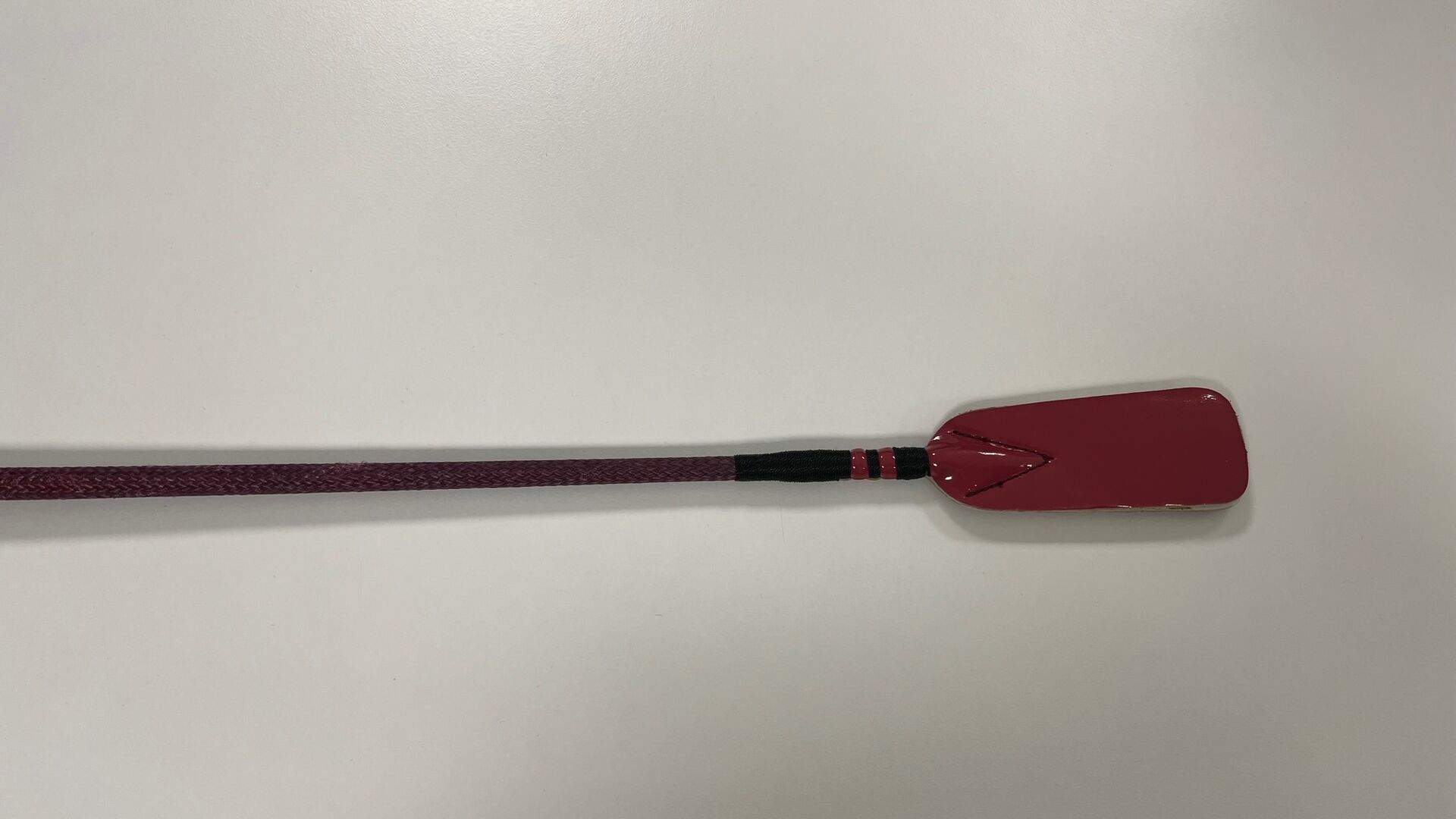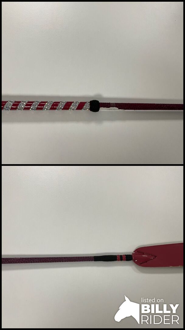 Hoppgrop 66 cm - Jumping crop röd/lila med smal flik och handtag med nitar röd/silverrandig