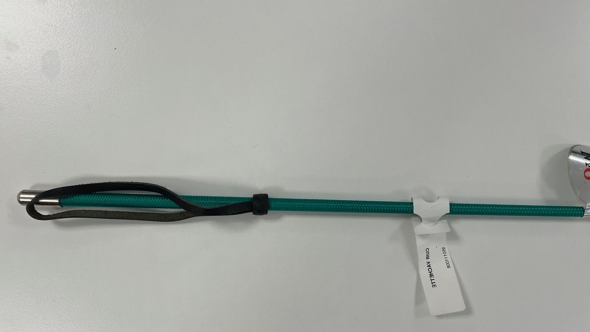 Hoppgrop 67,5 cm - Jumping crop i grönt med smal flik i svart läder och separat läderhandögla