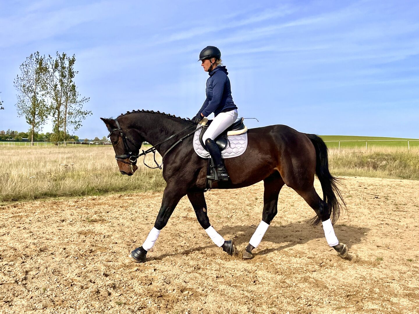 Hoppning uppfödd vacker valack - Jag erbjuder min hemuppfödda valack till försäljning i fostrande händer. På grund av sin storlek har han haft mer tid att utvecklas och detta lönar sig nu. Han är bra under sadeln och vill bli utmanad. Han deltog i frihoppningstävlingen i Prussendorf två gånger och hedrades som ett premiumföl.