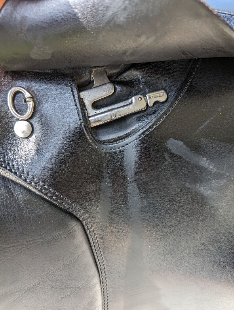 Sadeln var riden i ca ett halvår. Jag köpte den när den hade varit på hästen 5 gånger och panelerna ännu inte hade satt sig. Jag red den själv ungefär två gånger i veckan i 5 månader.