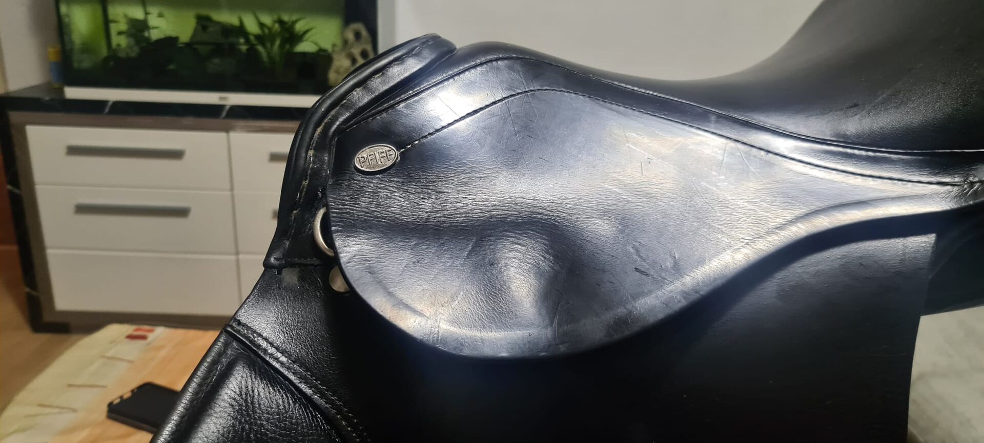 Hoppsadel Pfiff by Kiefer 17,5 tum - Tyvärr måste jag dela med mig av min Pfiff by Kiefer hoppsadel som är i mycket gott skick. Sadeln har en sittstorlek på 17,5 tum och var helt omstoppad för 3 månader sedan. Sadeln är i mycket gott skick, men som alla föremål för daglig användning har den tecken på slitage.