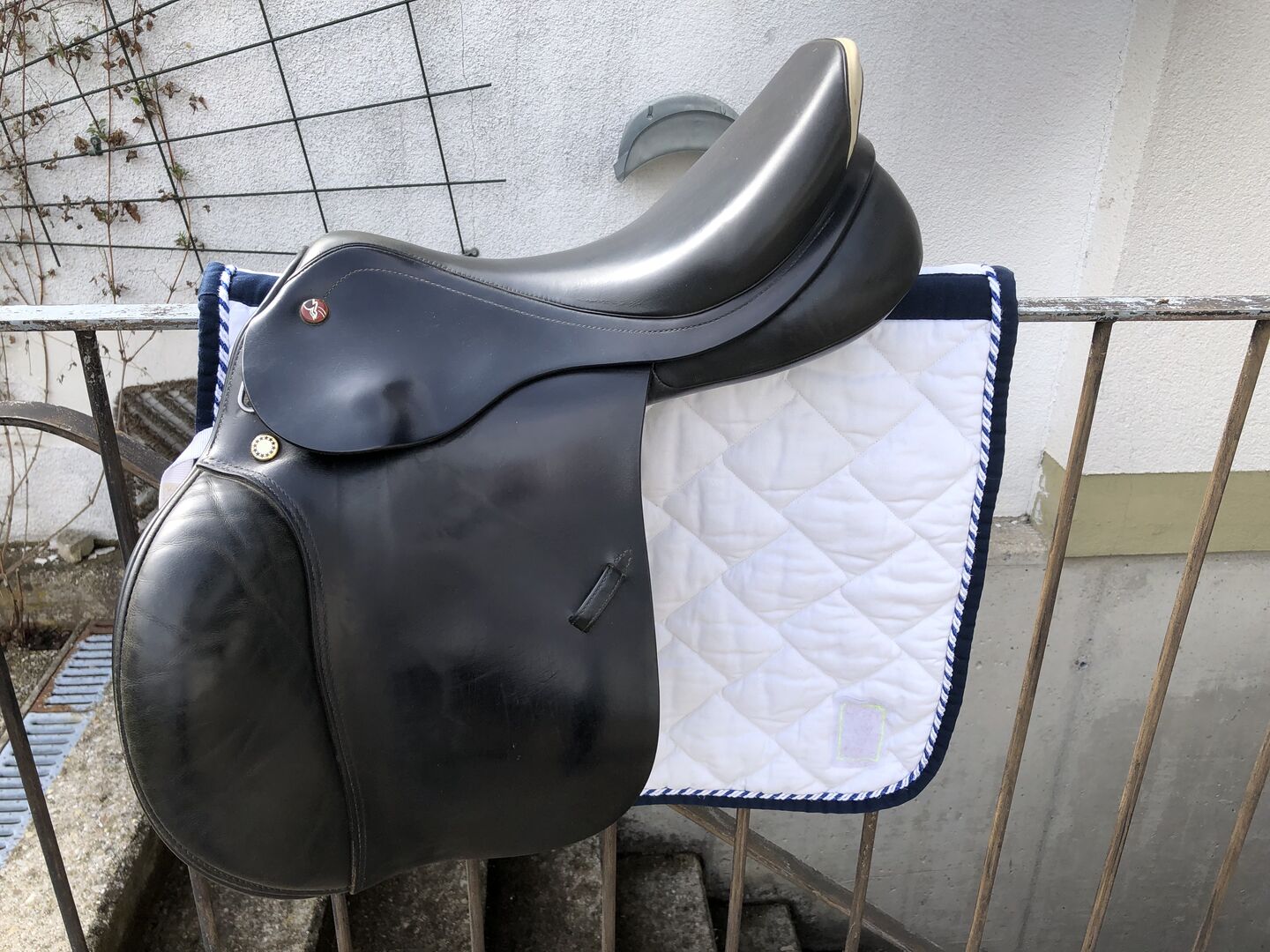Hoppsadel Prestige Elastic Professional - Säljer hoppsadeln på kommission. Den är begagnad och visar därför normala tecken på slitage. Sadeln har dock tagits väl om hand och regelbundet kontrollerats av sadelmakaren och vadderats vid behov. Enligt sadelmakaren är sadelträdet fortfarande i perfekt skick, vilket också har bekräftats skriftligen. KW är 34, 17er sits. Vänligen kontakta mig om du har några frågor. Eftersom detta är en privat försäljning är returer, byten, garantier etc. uteslutna. Köparen står för fraktkostnaderna.