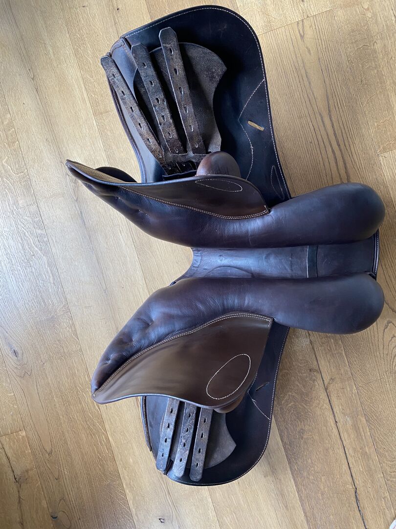 Det är i mycket gott skick. Alla som känner till denna sadel vet vad de får. Vackert läder av hög kvalitet och en mycket bra passform för många hästar.