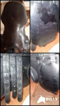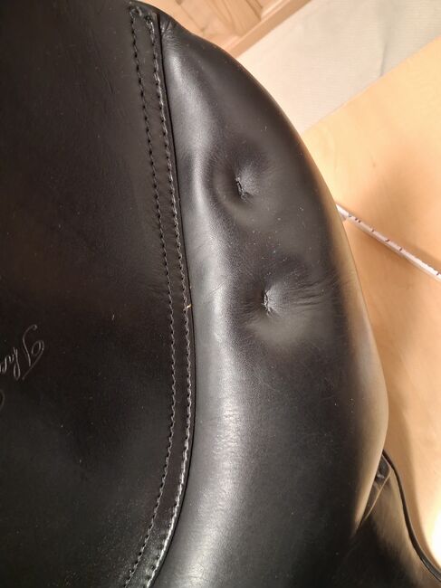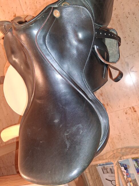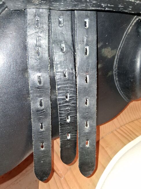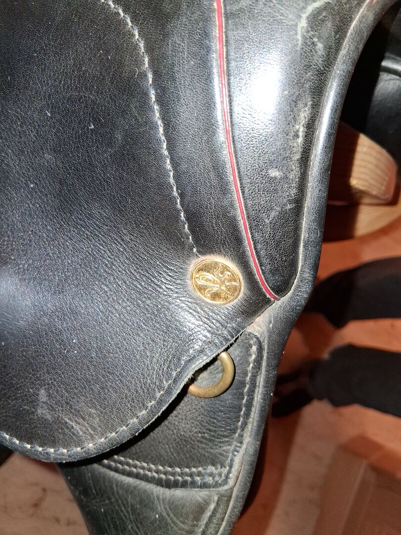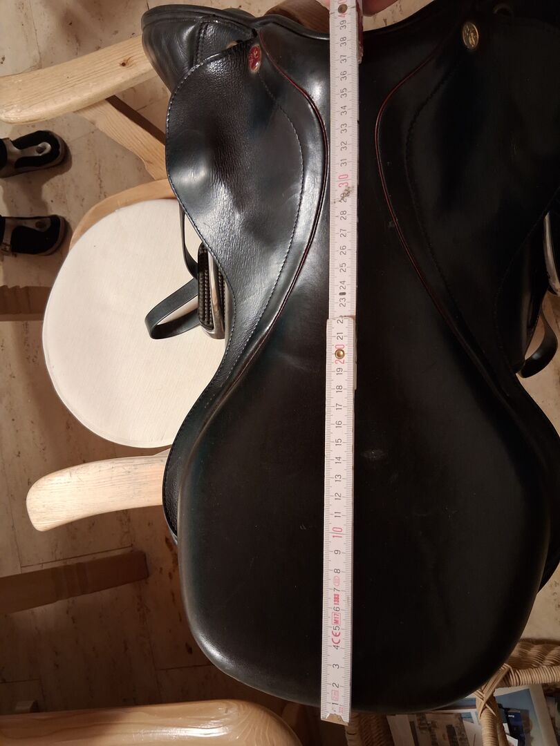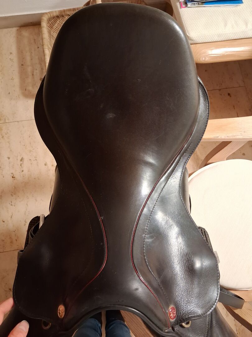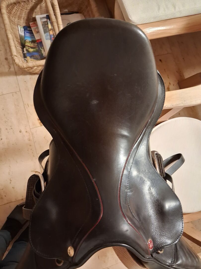 Skick: begagnad, nyöversedd och kontrollerad med mindre repor på framsidan av sitsen (se foton!). Regelbundet underhållna, alltid hängda torra. Sadelbock och sadelgjordsskiva utan defekter.