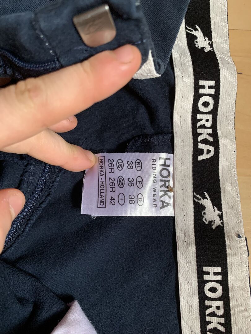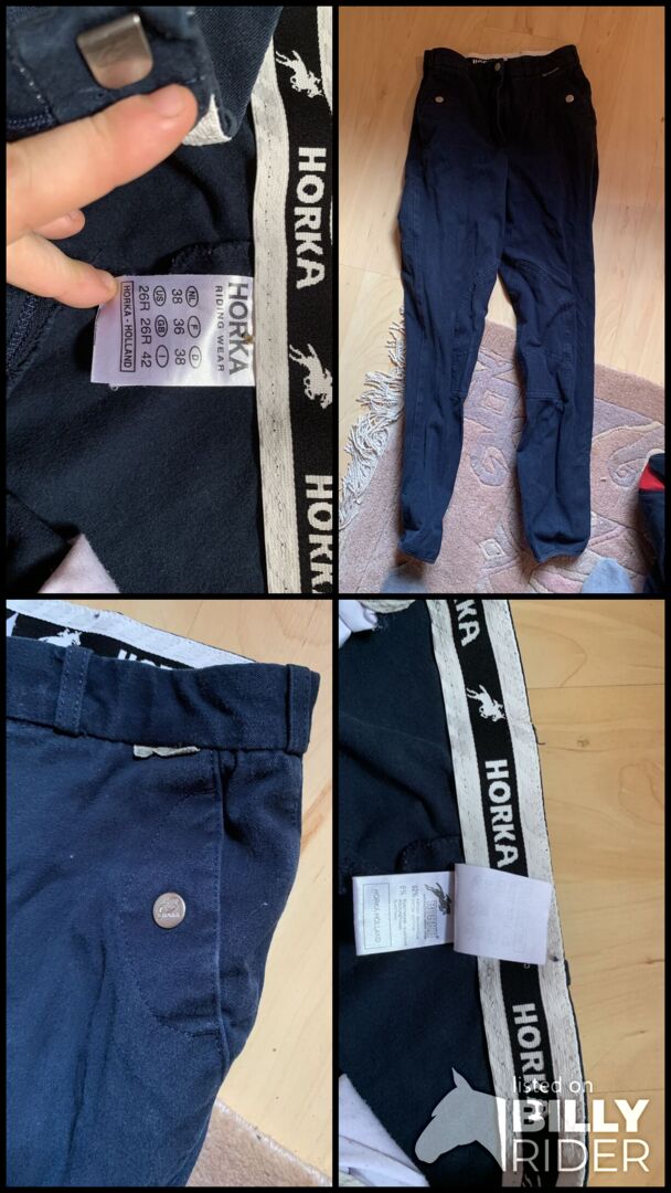 Horka ridbyxor - Jag säljer ett par Horka ridbyxor i nyskick. Jag har använt dem två gånger. Ridbyxorna finns i storlek 38. De har knappar på fickorna som inte lossnar så snabbt när man rider. Det finns inga fläckar eller trasiga områden i ridbyxorna.