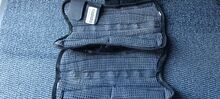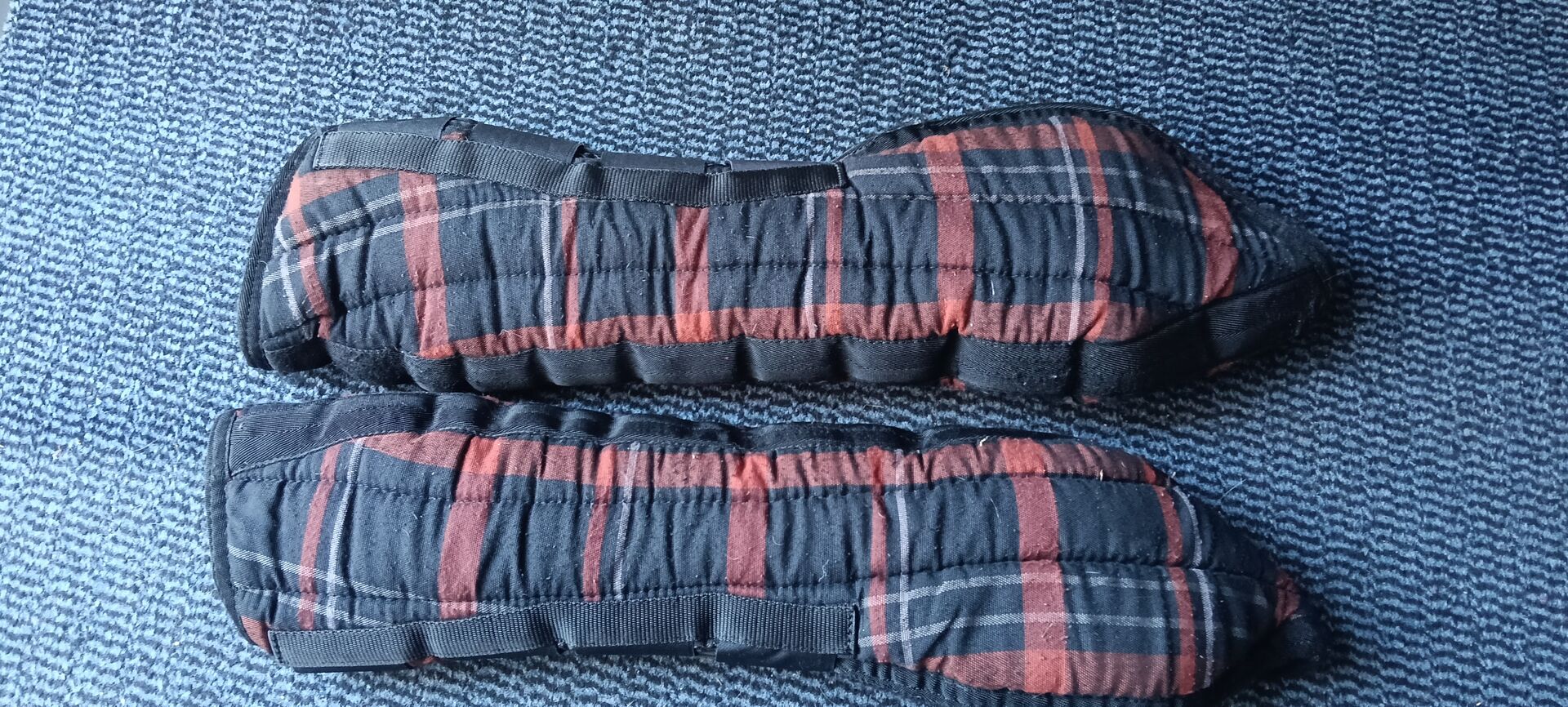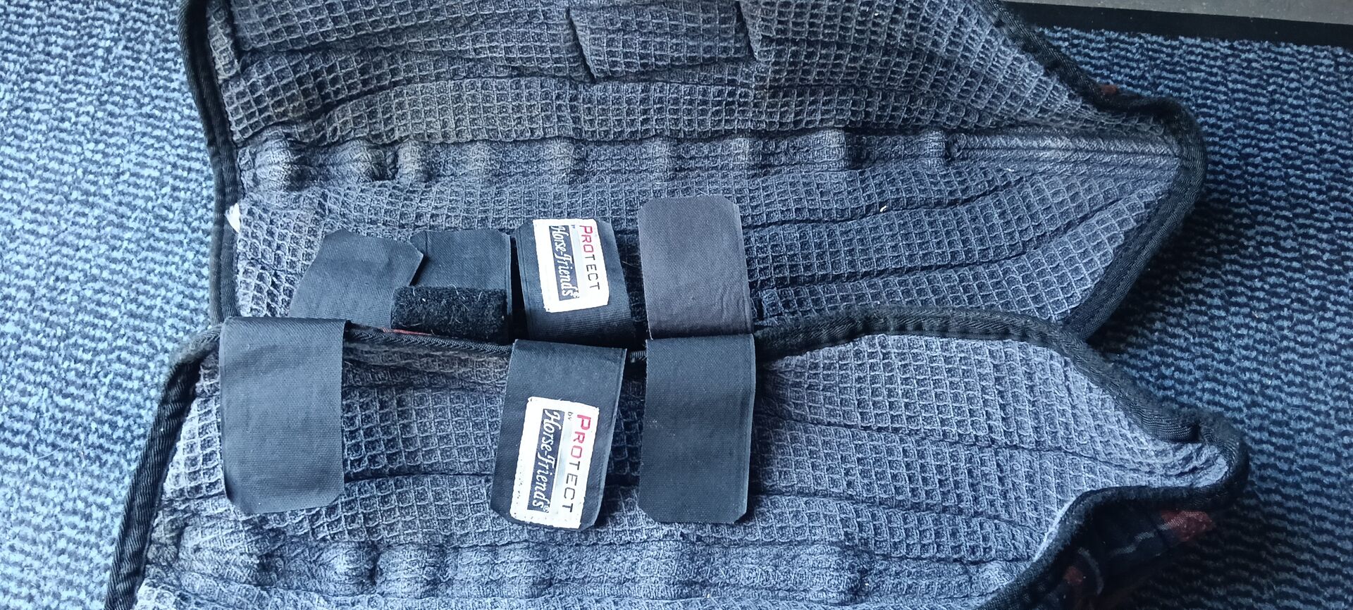 Horse-Friends transport damasker -sett ponni - Jag säljer en uppsättning transportgaiters eftersom de inte längre används. Ett av de främre benskydden har en reva, men är fortfarande användbart. Storlek ponny