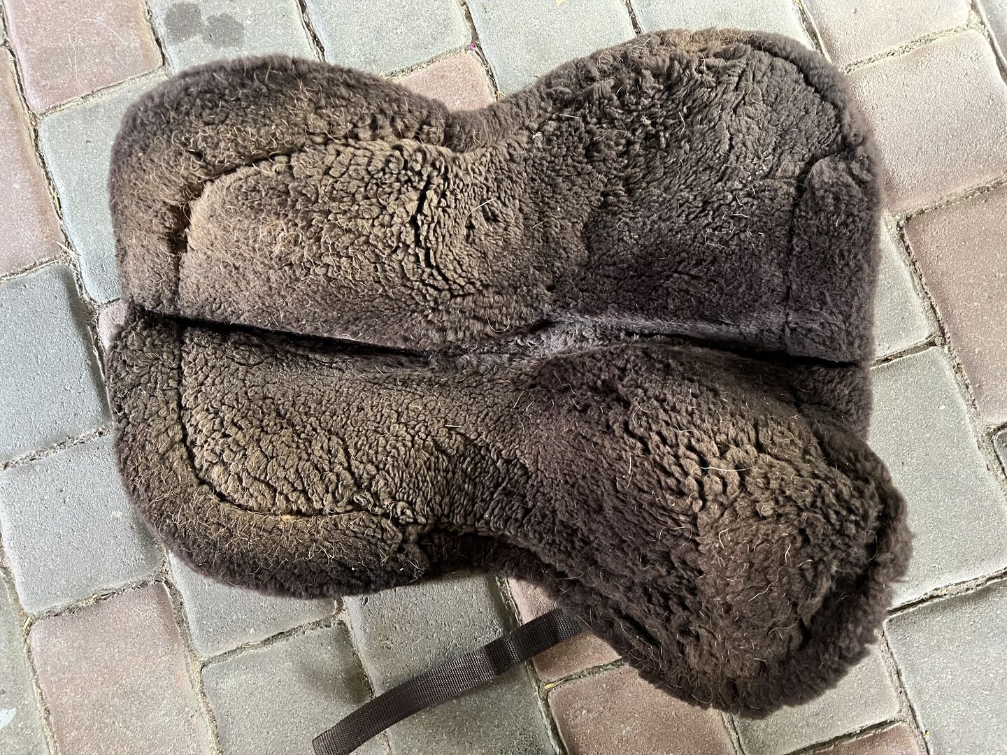 Horse Friends WB Lammskinnsdyna - Bjud på en brun lammskinnsdyna från Horse Friends (Loesdau). Rygglängd: ca 59 cm Axelbredd: ca. 56cm Jag tar gärna bilder av mätningarna på begäran.