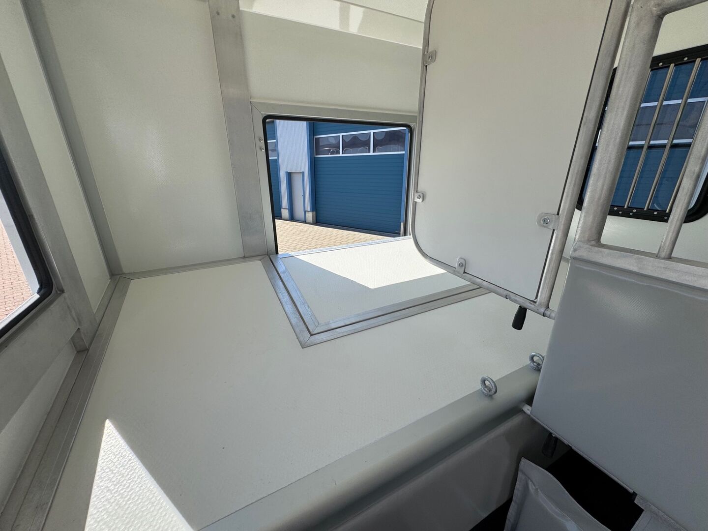 En elektrisk fläkt, 2 takluckor och 2 nedfällbara fönster på hästhuvudena ger luft och ljus i hästutrymmet. Vårt kamerasystem gör att du kan övervaka hästarna under resan och det bakre området när du backar. Vita och blå LED-lampor ger rätt belysning i lastbilen både dag och natt.