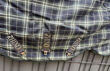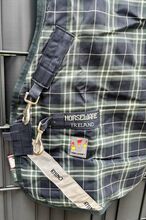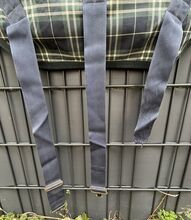 Täcket har använts i det öppna stallet och har rengjorts professionellt. Tyvärr skadades den främre magremmen under rengöringen, men påverkar inte filtens passform. Vänligen kontakta mig om du har några frågor :)