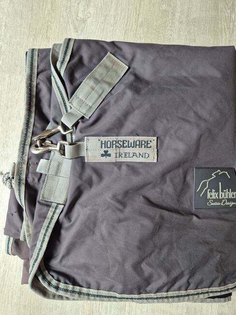 Horseware WUG Felix Bühler Turnout-täcke Regntäcke 130 cm 50 g - Till salu begagnat Horseware turnout täcke WUG (Highneck), modell Felix Bühler, i storlek 130 cm och med 50 g fyllning. Färg: grå