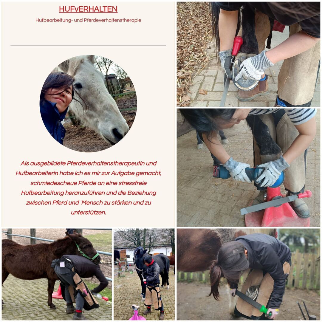 Jag är utbildad hovtrimmerska (biomekaniskt utbildad) och hästbeteendeterapeut och har specialiserat mig på problemhästar vid hovtrimning.
