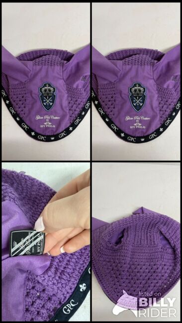 Den imponerar med sin eleganta design med den broderade vapenskölden och det högkvalitativa utförandet. Den virkade strukturen säkerställer god ventilation, medan de mjuka öronen ger optimalt skydd mot flugor och insekter - perfekt för träning, tävlingar eller daglig användning i stallet.