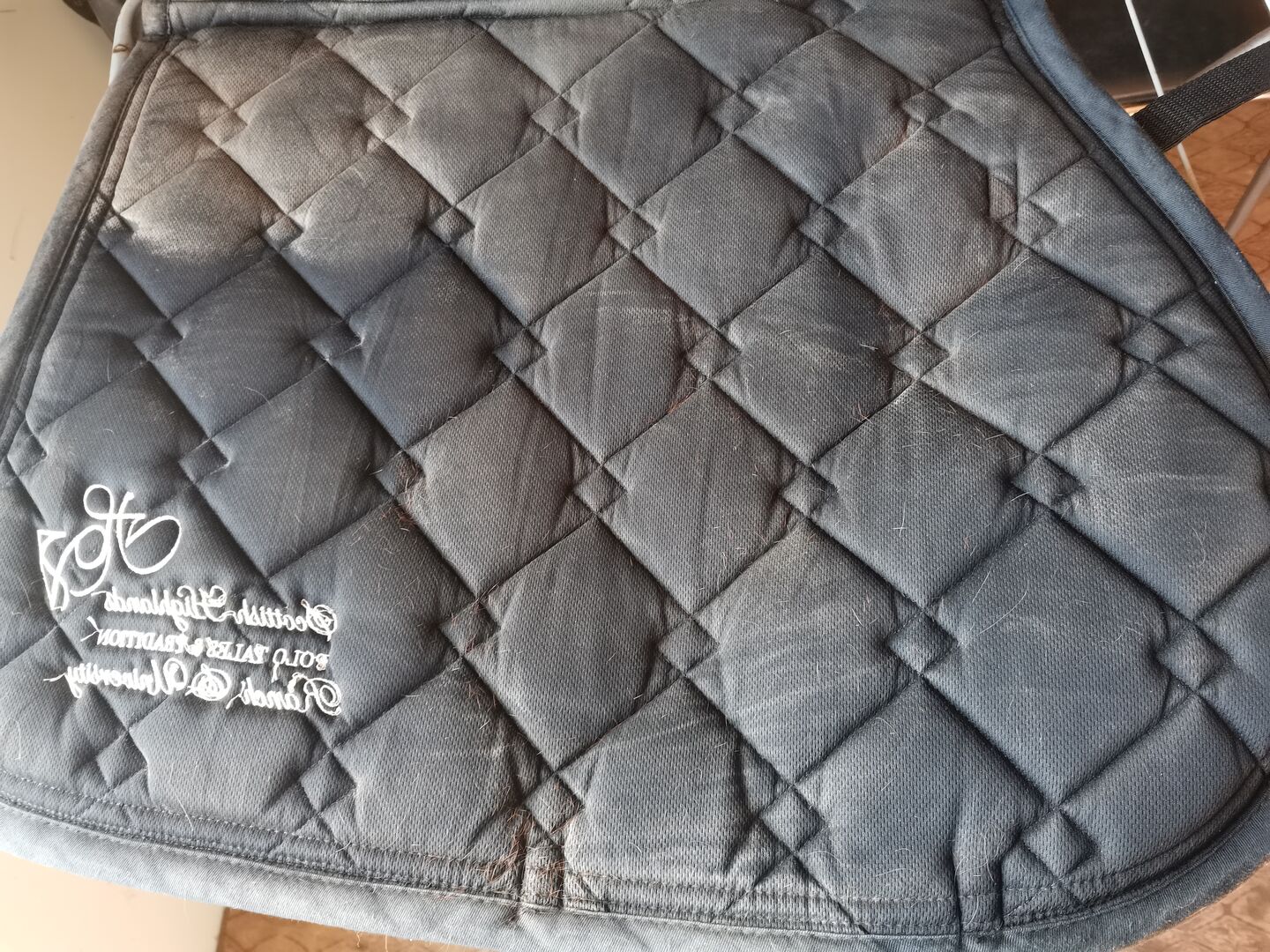 Sadelunderlaget ser nästan nytt ut på utsidan, knappt använt. Super chic logotyp och snygg kant med snöre och paljetter i guld.