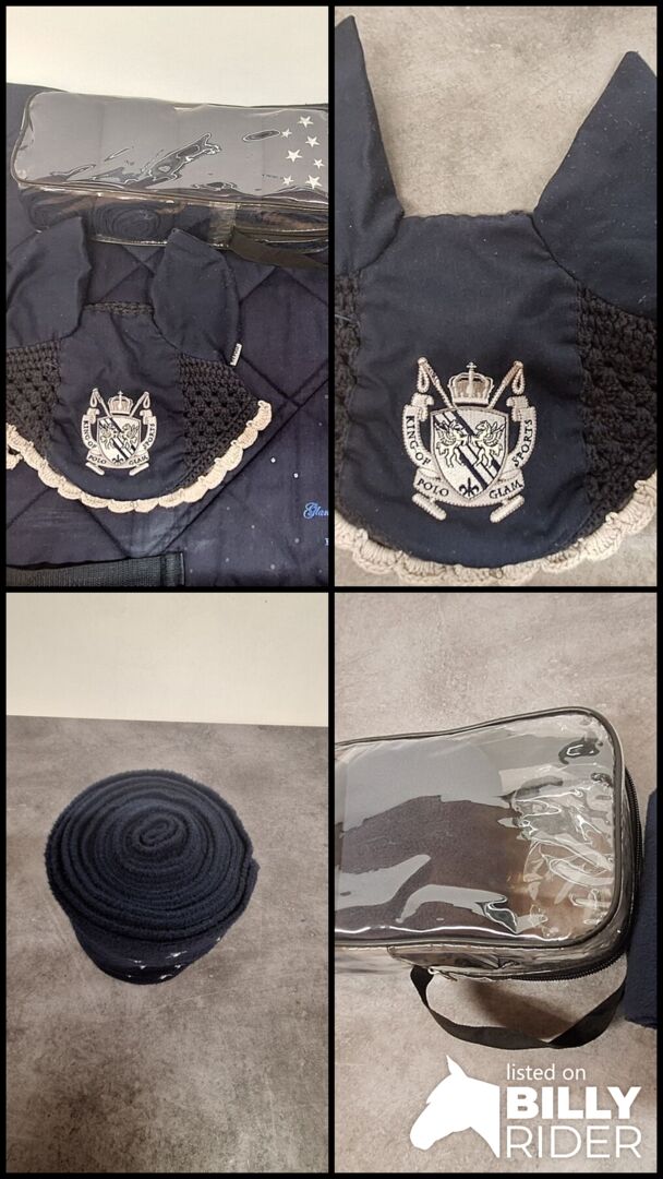 HV-polo-set - Till salu fint begagnat HV Polo set. Bandage är från Imperial Riding men matchar sadelunderlägget. Flyghatt i storlek VB/Cob. Allt avhårat och tvättat. Frakt möjligt, PayPal tillgängligt.