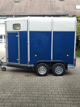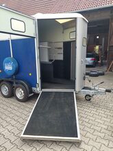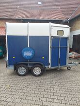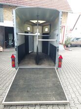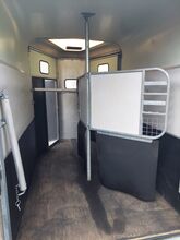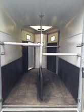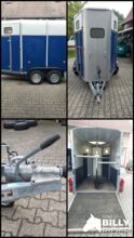 I för Williams HB505R, släpvagn för 2 hästar - I för Williams HB505R, 2 hästvagn År 98 TÜV ny fram till 10/27 Tillåten totalvikt 2.340 kg Vikt utan last 850 kg Nyttolast 1 490 kg Utgång fram till höger Vadderade sidoväggar 2 axlar, bromsade Reservhjul med kåpa Tredubbla, justerbara stänger