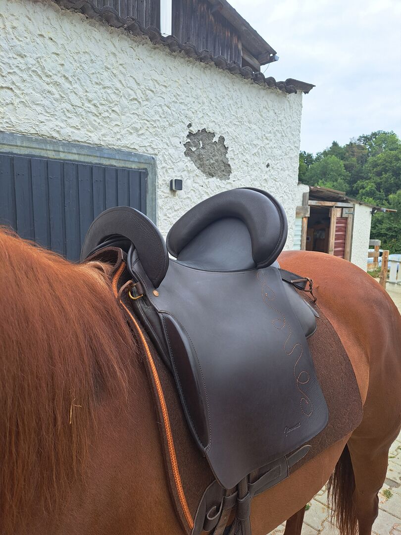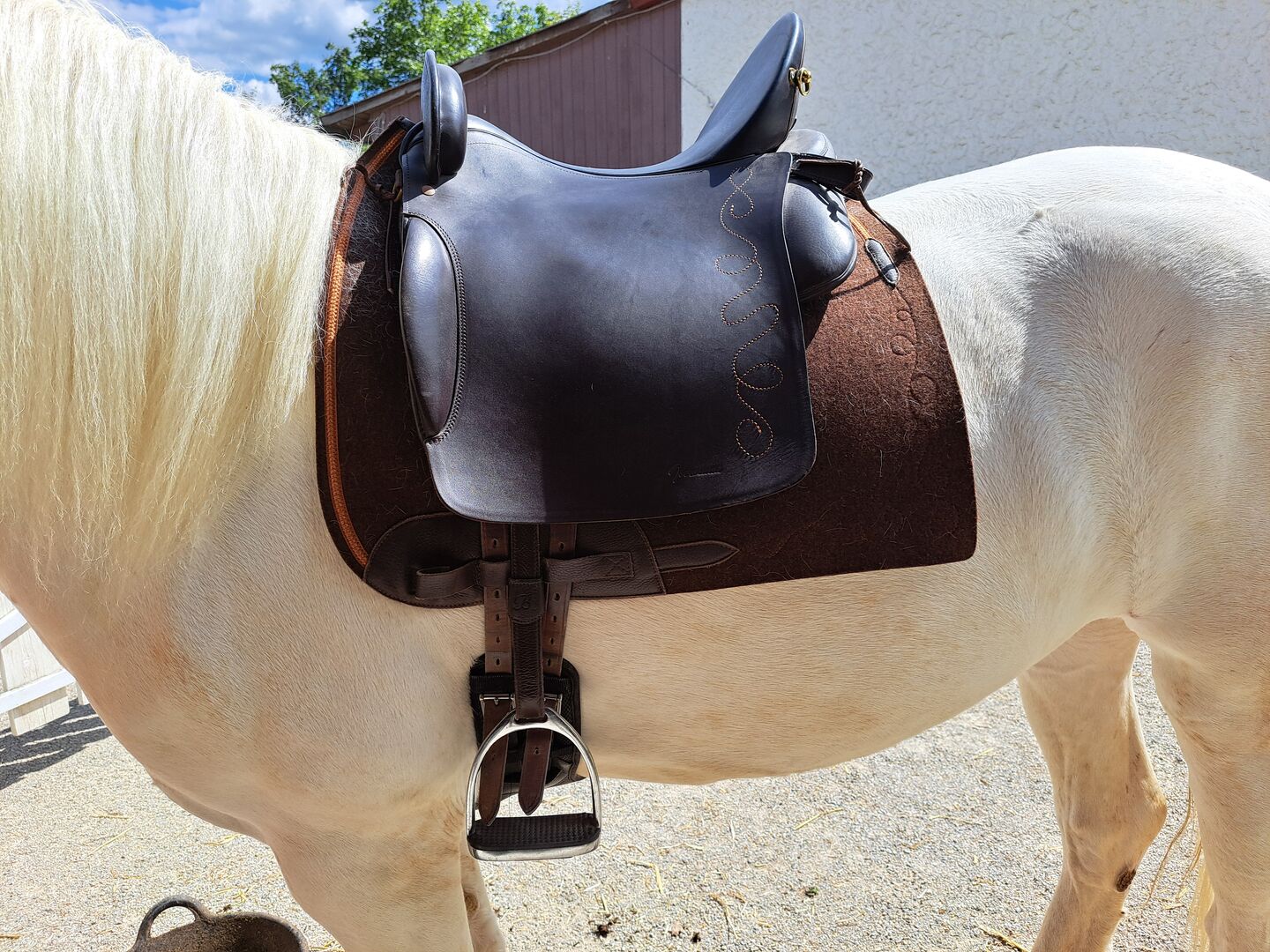 Ibero sadel Classic Plus med tillbehör - Säljer min Ibero sadel Classic plus (NP 2990) sitsstorlek 18", färg mocha. 1 1/2 år gammal. Inkl 1 lammskinn (NP 290), och filtschabrake (NP 289) + mono stigläder. Jag använde sadeln på mitt 151 cm Connemara-sto. Jag är nu intresserad av dressyrridning, därav bytet. Sadeln är mycket bekväm och erbjuder hästen utmärkt axelfrihet. Den har en bred och bekväm stoppning som skyddar hästens rygg, samtidigt som ryttaren sitter lågt och har optimal kontroll över hjälperna. Lammskinnet är underbart varmt på vintern och man sitter som på moln