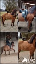 Isländsk valack Brun dun - Tengill föddes i Österrike 5/2018 och kom till oss direkt från uppfödaren (Stefanihof) i början av 2025. Vi blev omedelbart tagna med hans milda natur - en sann gentleman. Han är ändå mycket nyfiken, ibland fortfarande lite osäker på grund av brist på erfarenhet, men inte nervös eller okontrollerad. Han har hittills inte haft några dåliga erfarenheter av människor och känner varken till påtryckningar eller bestraffningar från vår sida. Detta bör förbli fallet efter ägarbytet! Att ta sig in och ut ur vagnen är inget problem för honom, han känner också hovslagaren och veterinären. Från början av april till slutet av oktober tillbringar han hela dagarna på gårdens egna betesmarker och under vintermånaderna i lösdriftsstallet tillsammans med andra valacker. Här brukar han visa sig i de övre leden utan dominansbeteende över genomsnittet, men han drar sig inte för att göra sin plats tydlig. Hans unika färg och framtoning sticker verkligen ut och gör honom till något speciellt. Under sadeln visar han mycket action med mycket hög/bred och vill helt enkelt vara till lags eller lär sig mycket snabbt. Hans storlek möjliggör en solid sits, erbjuder ryttaren mycket säkerhet och är helt enkelt kul att rida. Vi ser honom som en pålitlig partner både som en lyxig fritidshäst och i 5-gångssporten, även om det fortfarande finns gott om utrymme för förbättringar inom båda områdena. Hans starka exteriör och storlek gör honom också till en idealisk häst för vuxna. Tengill är för närvarande regelbundet vaccinerad, avmaskad och skodd och visar inga tecken på eksem eller andra sjukdomar. På grund av sin nuvarande träningsnivå är han fortfarande rimligt prissatt just nu, men priset kommer att öka när hans träning fortskrider, vilket vi kommer att börja intensivt från 2026. Vi placerar inte Tengill i en skola (!!!) och vill inte bli av med honom till något pris. Engagerade ryttare med tillräcklig riderfarenhet skulle vara den perfekta partnern för honom att fullt ut förverkliga sin potential med mycket tålamod! Prisintervallet mellan € 12 500 och € 16 000 representerar den absoluta nedre och övre gränsen för oss och kommer i slutändan att närma sig den övre gränsen när träningen fortskrider.